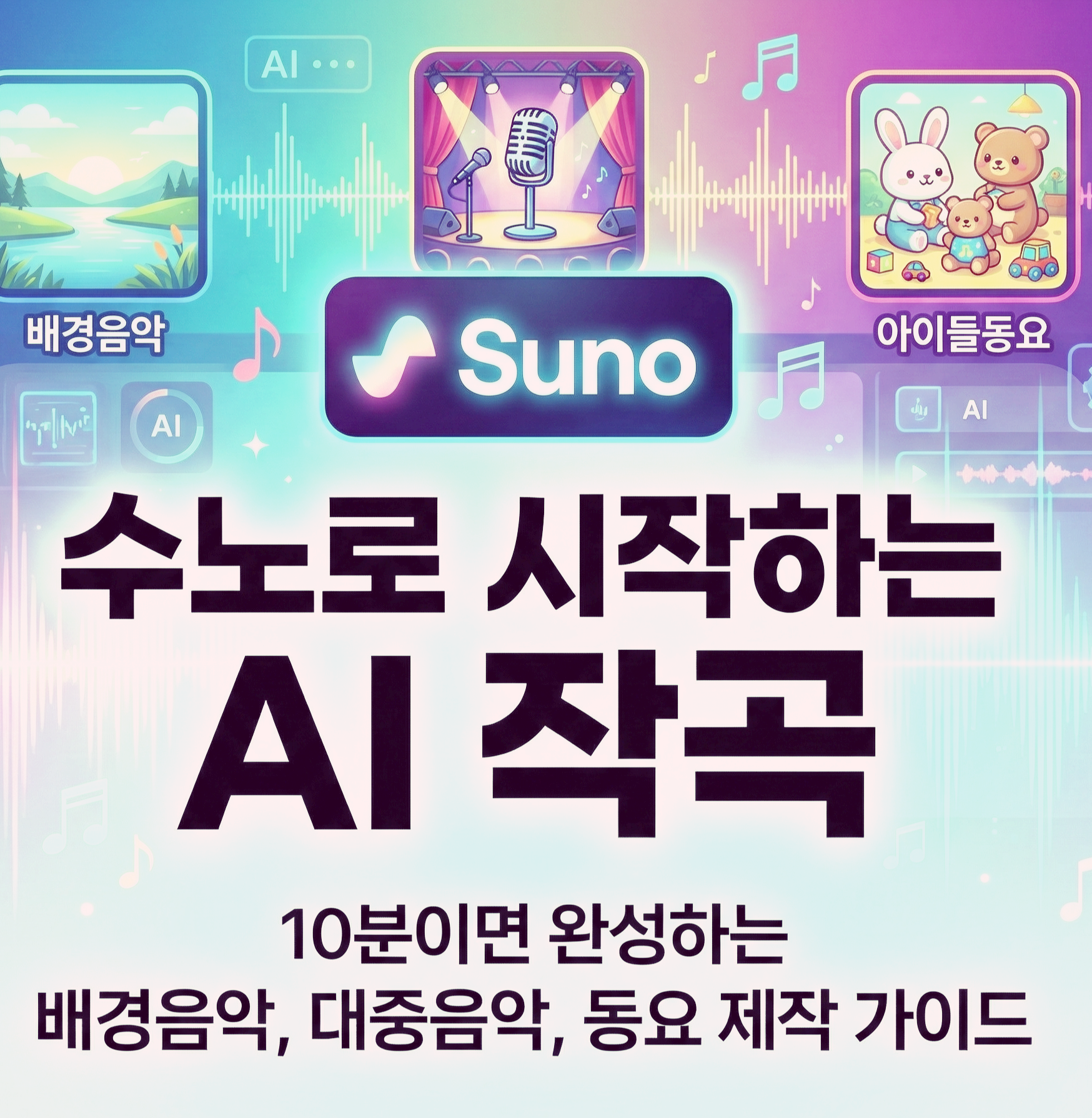 - 제목: 수노로 시작하는 AI 작곡 - 10분이면 완성하는 배경음악, 대중음악, 동요 제작 가이드